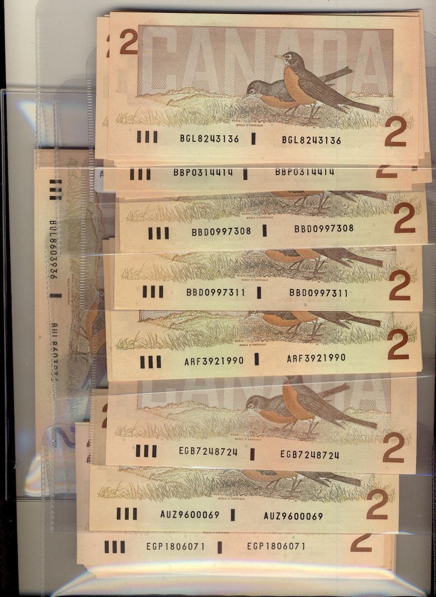 1986 $2. Lot of 229 notes including different prefixes and different signatures. UNC. Should be viewed.