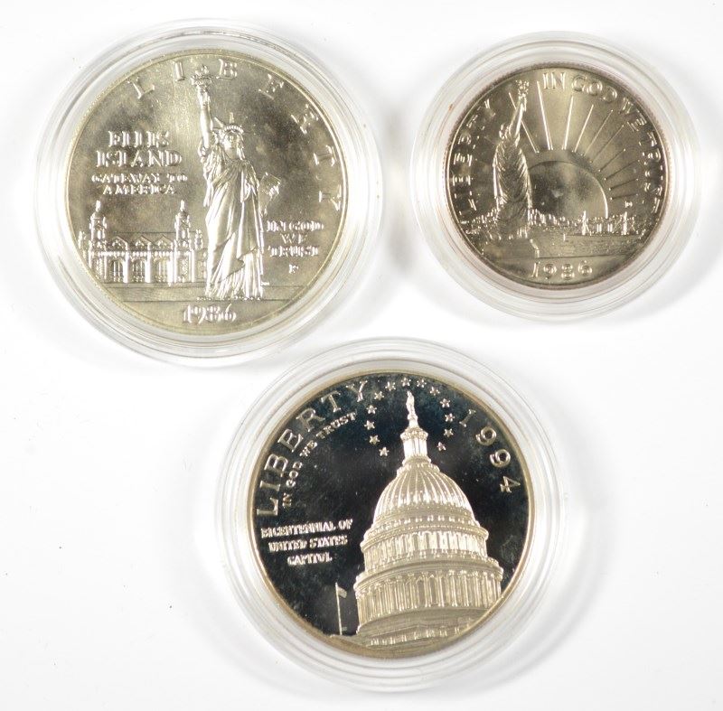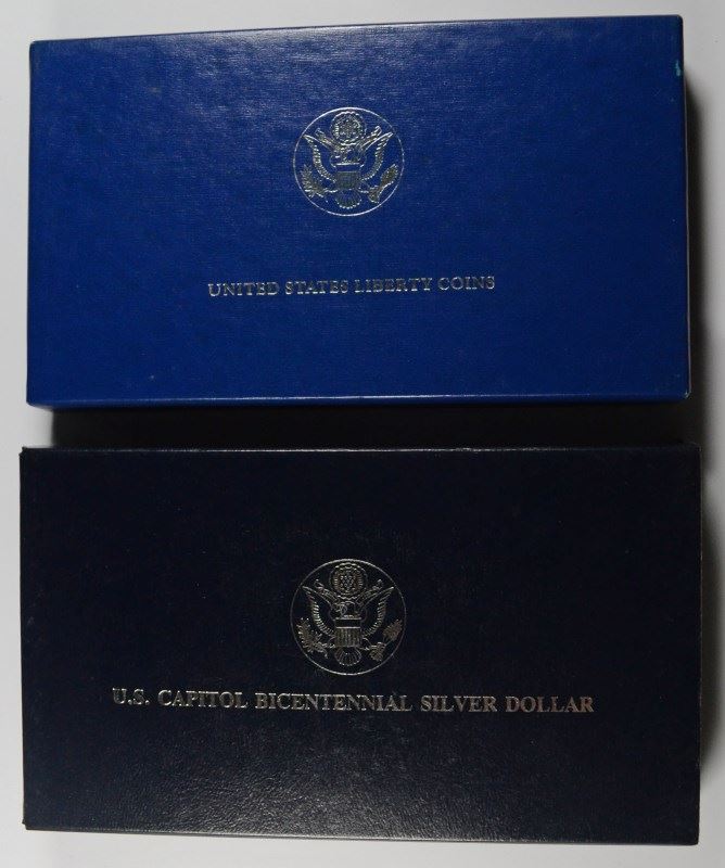 1986 2 PIECE LIBERTY UNC, HAS ORIG BOX - NO SLEEVE/MISSING CERT & 94 CAPITOL Pf
