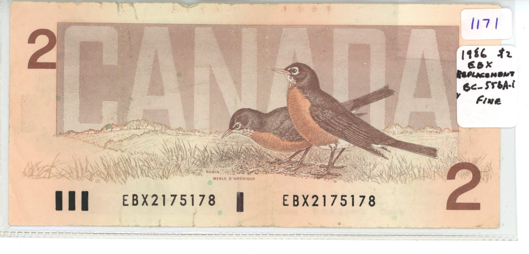 1986 $2 Replacement. EBX Replacement Prefix. Thiessen-Crow signatures. BC-55bA-i. Fine.