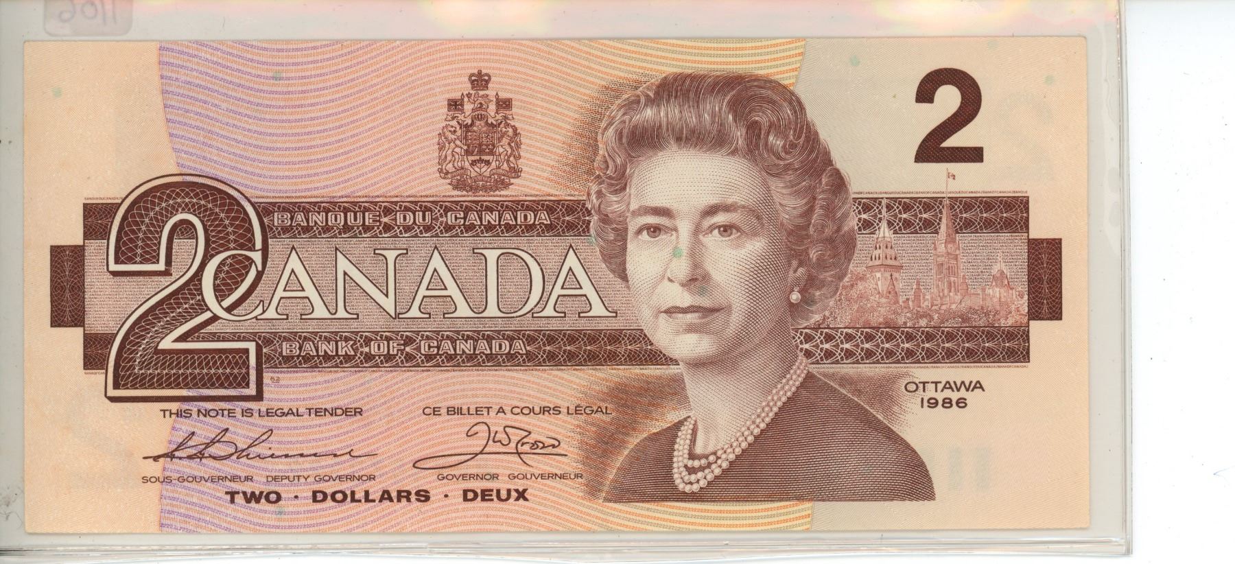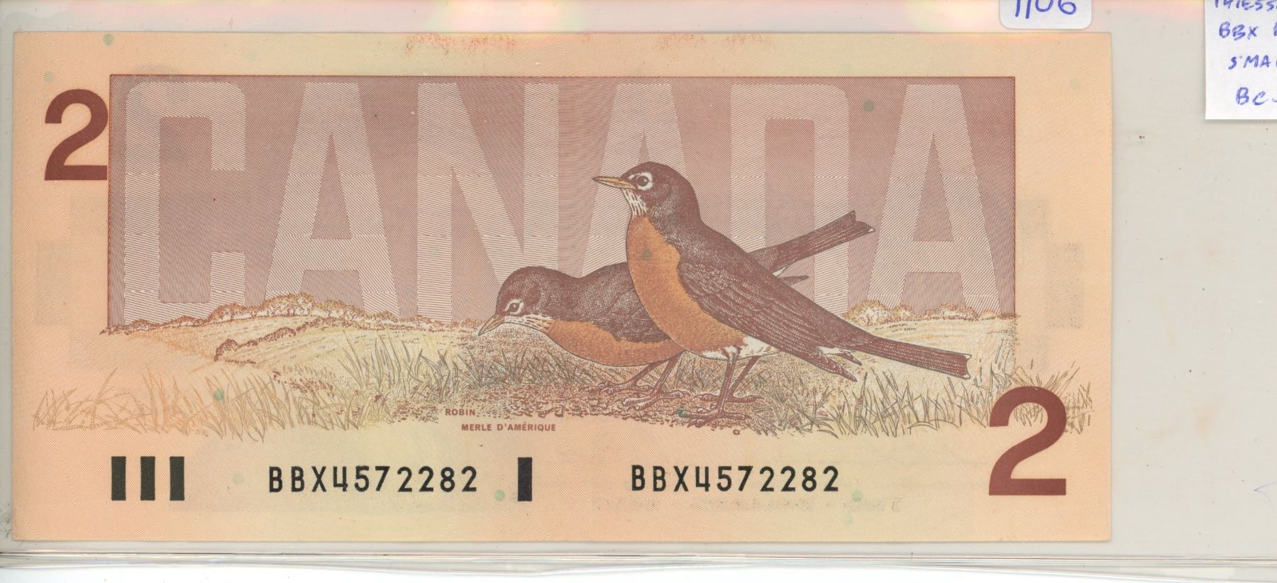 1986 $2 Replacement. Thiessen-Crow signatures. BBX Replacement Prefix. Small B. BC-55bA. VF-20.