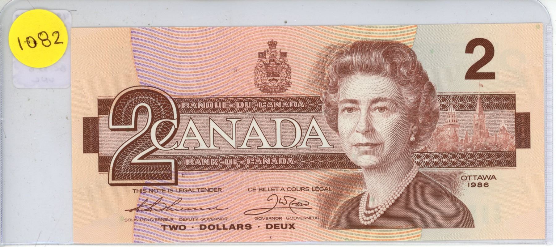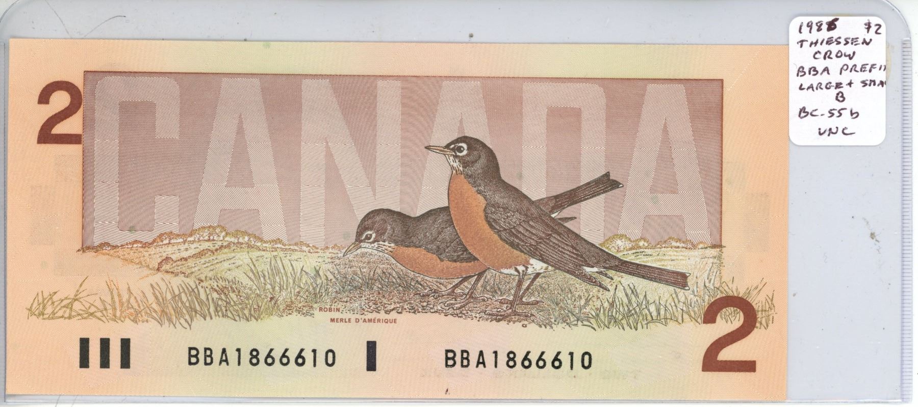 1986 $2. Thiessen-Crow signatures. BBA Prefix with Large & Small B. BC-55b. Uncirculated.