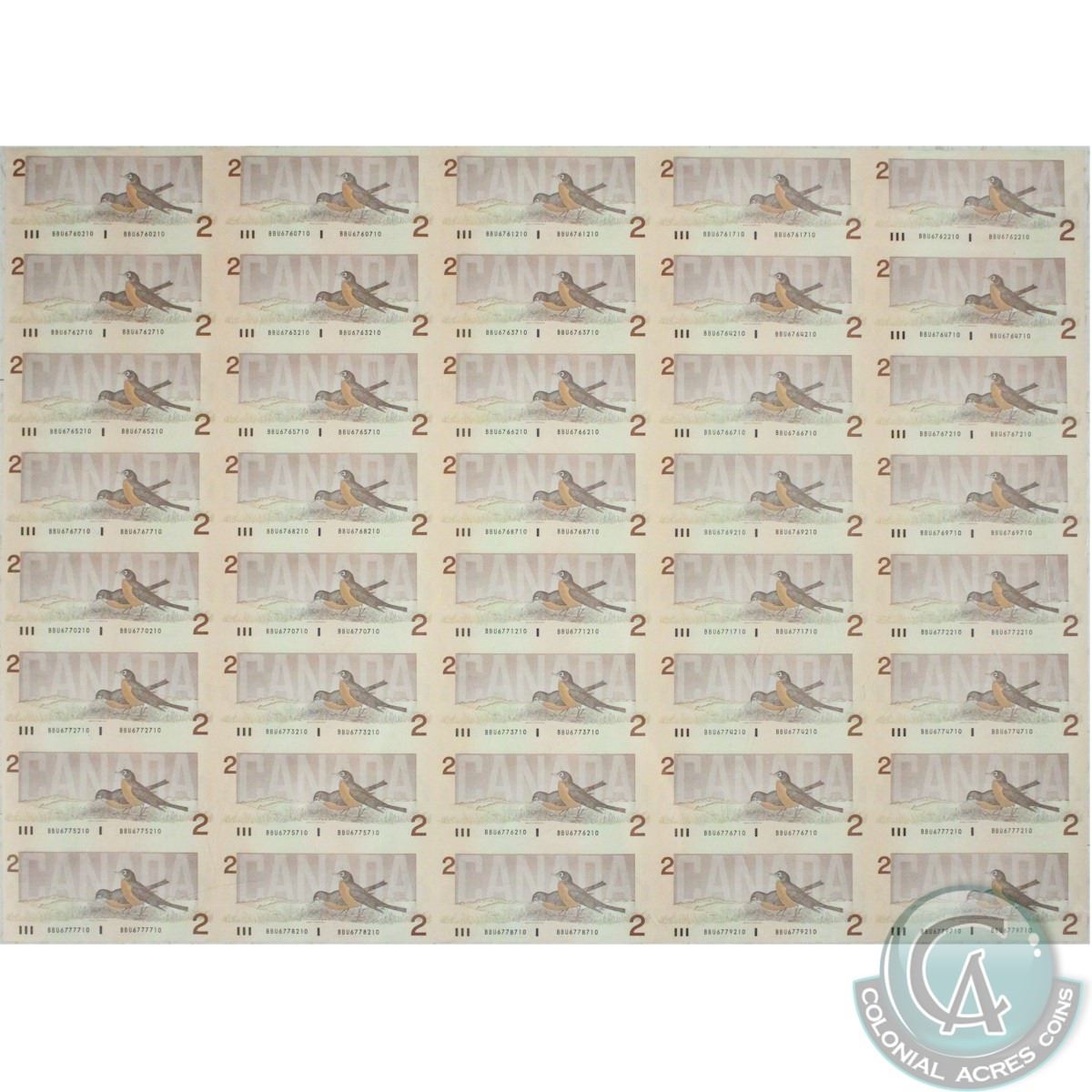 1986 $2 Uncut sheet of 40; 5 x 8 format, prefix BBU.
