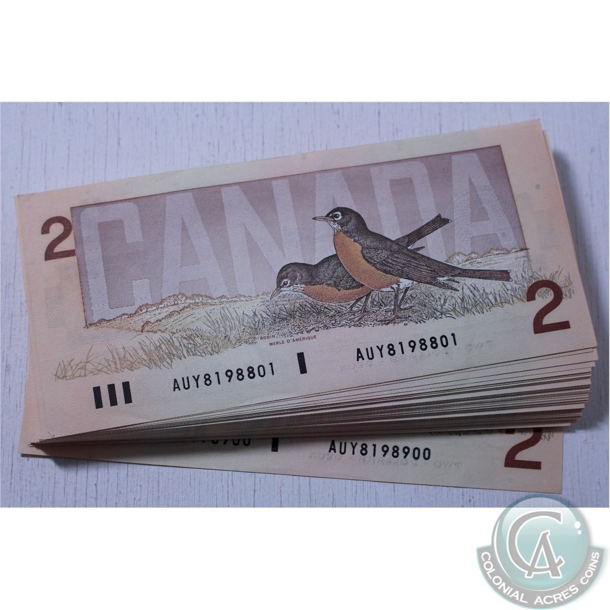 1986 $2 consecutive serial numbers Uncirculated. BC-55b, Thiessen-Crow, S/N: AUY8198801 to AUY8198900. 100pcs