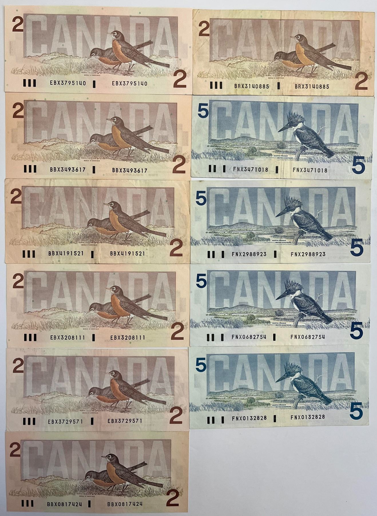 1986 $2's & $5's Lot of 11 replacement notes VF to Unc. Includes different prefixes.