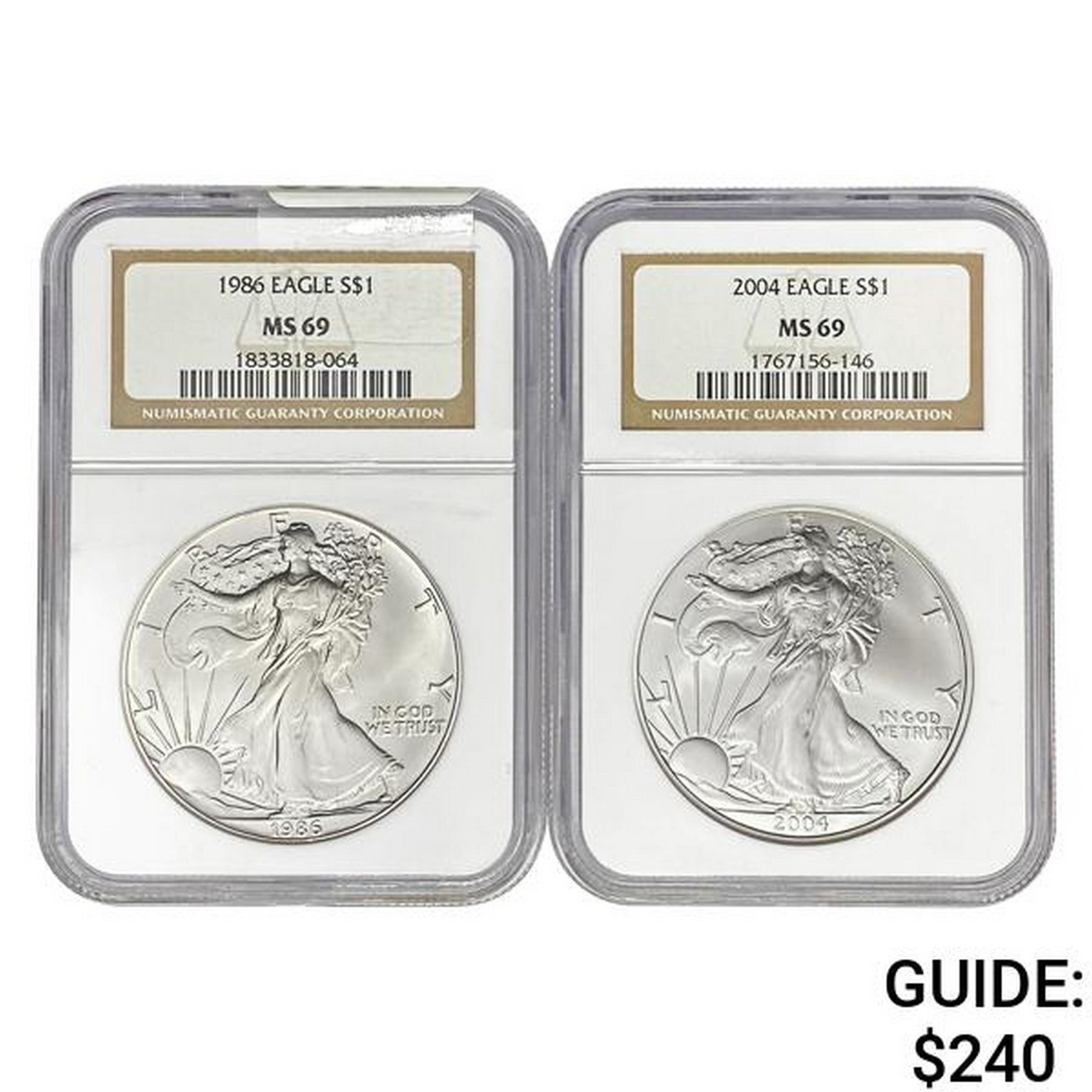 1986/2000 American Silver Eagles NGC MS69 [2 Coins]