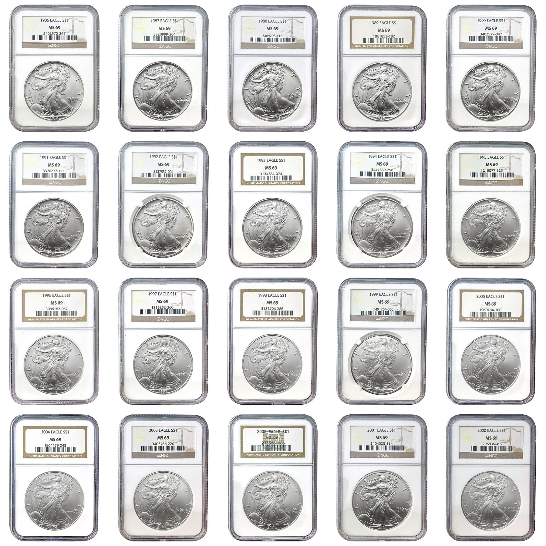1986-2005 American SIlver Eagle Set [20 Coins] NGC MS69