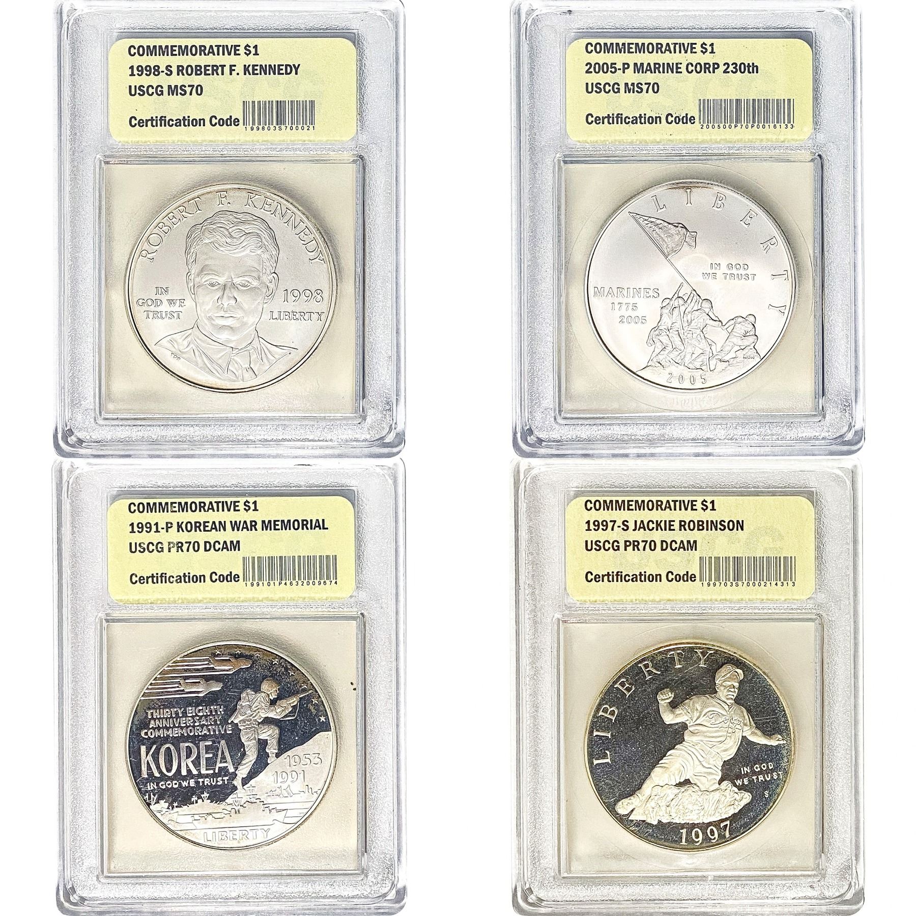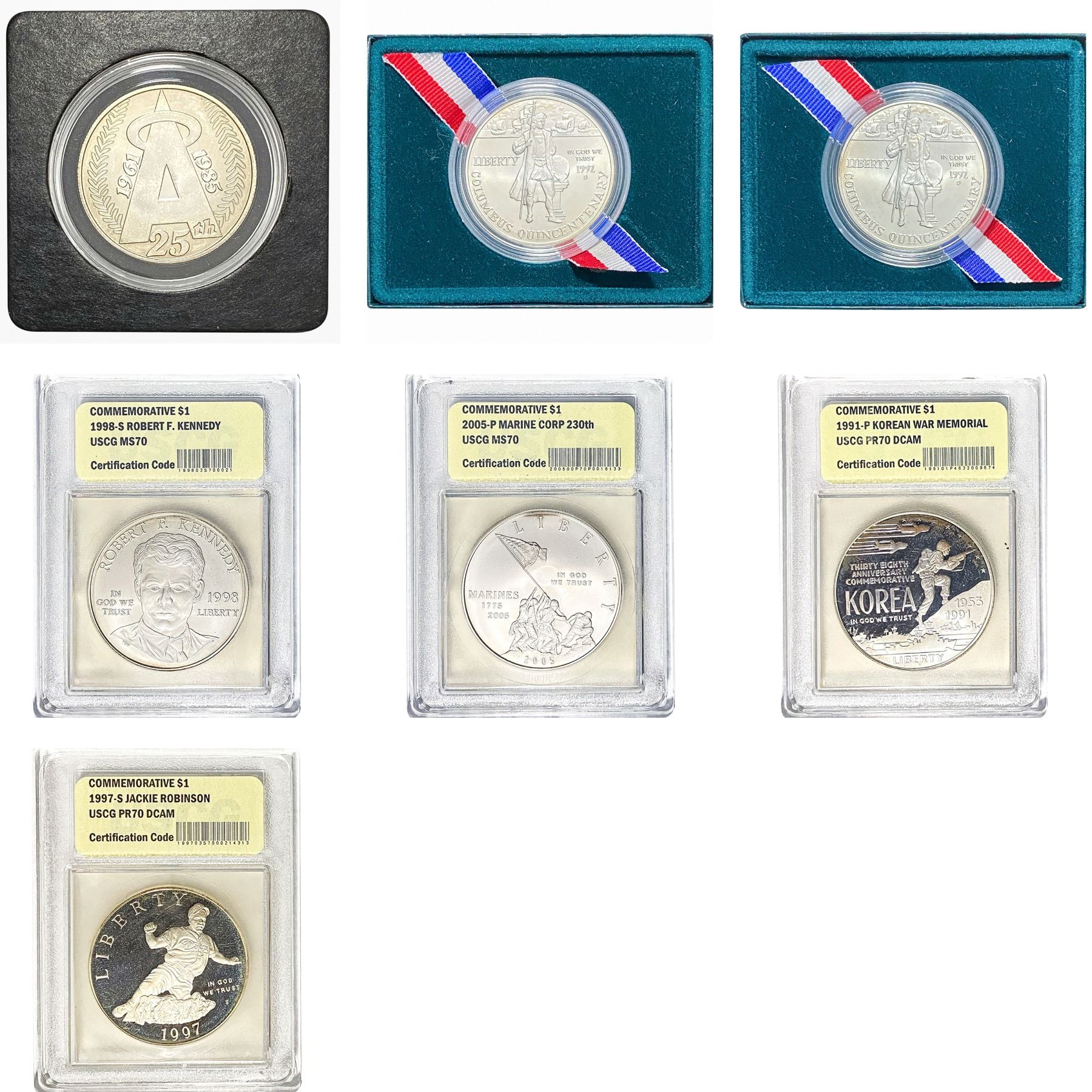 1986-2005 US Commemorative Silver Dollar Lot [7 Coins] USCG PF70 DCAM