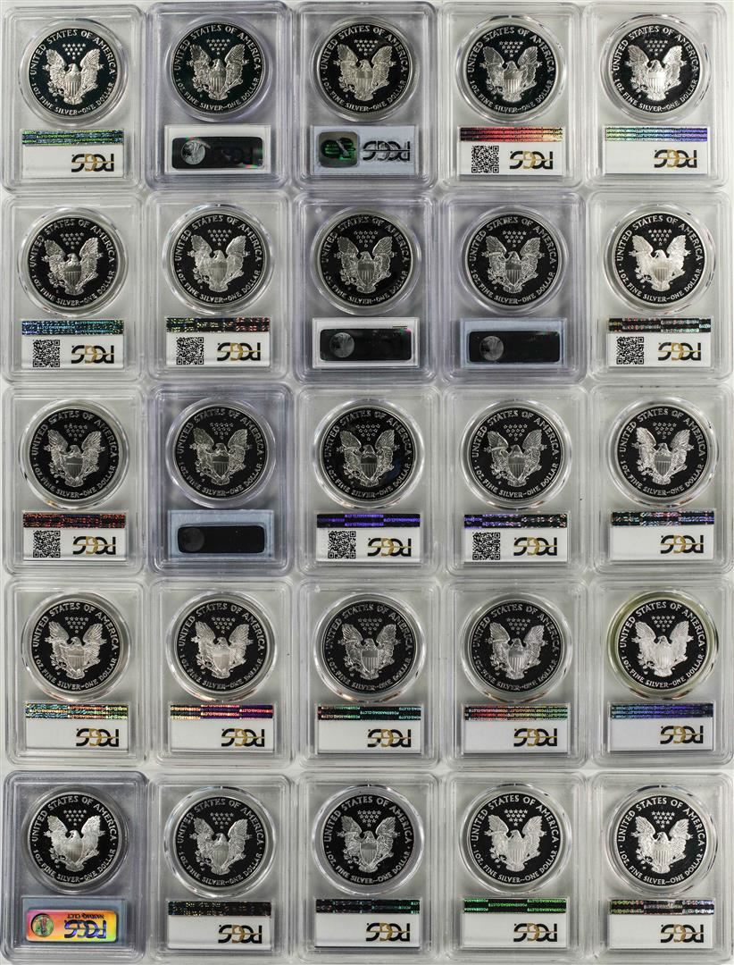 One 1986-2011 $1 Proof American Silver Eagle (25) Coin Set PCGS PR69DCAM w/ Box. PCGS Graded.