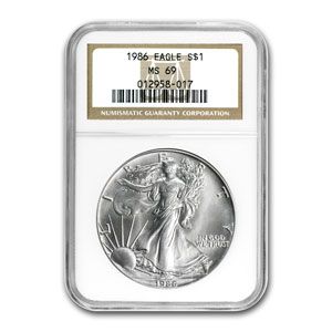 1986-2012 Silver American Eagle Set NGC (MS-69) 2 NGC B **|**|** All 27 Silver Eagles! Featured in two brand-new NGC boxes, this Silver Eagle Set includes a complete 27-coin set of the Silver Eagles from 1986 to 2012. All of the coins are graded MS-69 by NGC. Containing 1 troy ounce of 99.9-fine pure Silver, the Americ ; MSRP: $8900