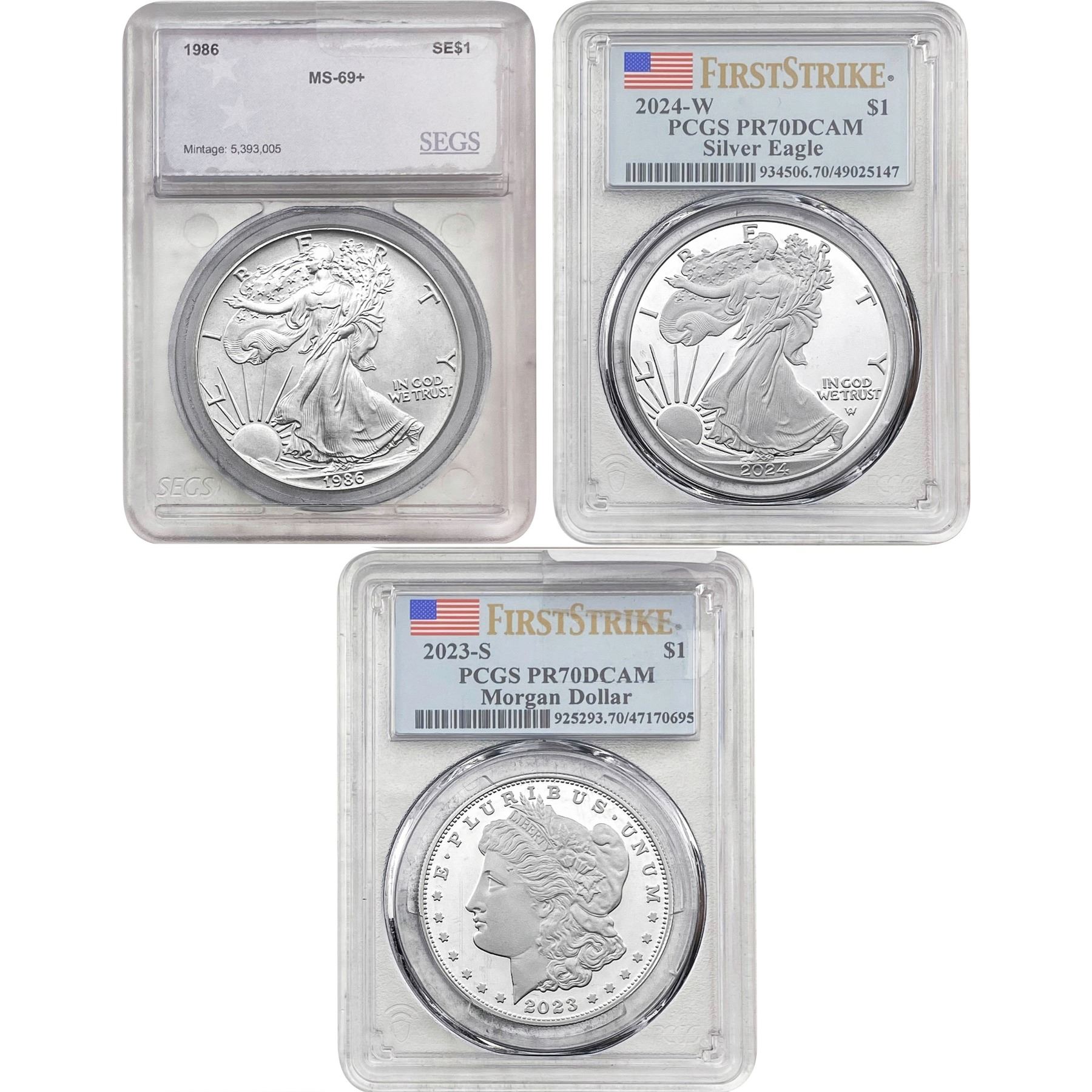 COINS AND CURRENCY LISTED IN GSA’S CATALOG AS GRADED AND ENCAPSULATED BY PCGS, NGC, ANACS, ICG, PCGS CURRENCY, PMG, PCGS BANKNOTE GRADING, CMC OR ANY OTHER THIRD-PARTY GRADING SERVICE ARE LIKEWISE SOLD “AS-IS” EXCEPT AS EXPRESSLY SET FORTH HEREIN. ALL THIRD-PARTY GRADING SERVICE GUARANTEES, INCLUDING AUTHENTICITY, ARE THE SOLE RESPONSIBILITY OF THE THIRD-PARTY GRADING SERVICE AND NOT WARRANTIES OR GUARANTEES OF GSA. BIDDERS SHOULD CONTACT THESE THIRD-PARTY GRADING SERVICES DIRECTLY WITH RESPECT TO ANY CLAIMS OR QUESTIONS THEY MAY HAVE CONCERNING THEIR GUARANTEES AND WARRANTIES. BIDDERS ACKNOWLEDGE AND AGREE THAT AUCTIONEER IS NOT BOUND BY OR LIABLE FOR ANY OPINION OR CERTIFICATION BY ANY THIRD-PARTY GRADING SERVICE. REMOVAL OF A PRODUCT FROM ITS PROTECTIVE CASING OR HOLDER OR ALTERATION OF ANY COIN HOLDER WAIVES ALL RIGHTS CONCERNING THE PRODUCT CONTAINED THEREIN.