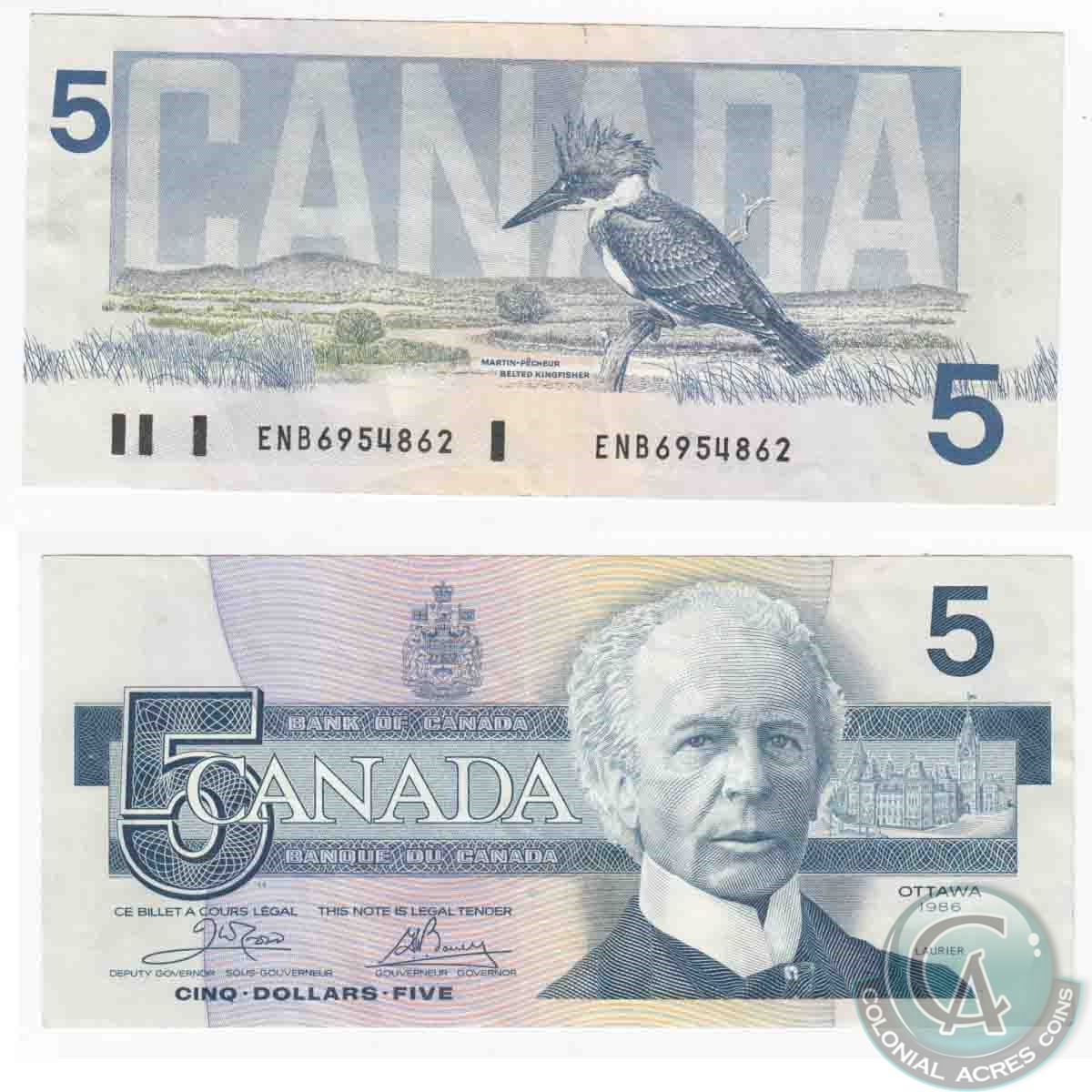 1986 $5.00 note with Crow-Bouey signature and ENB prefix.