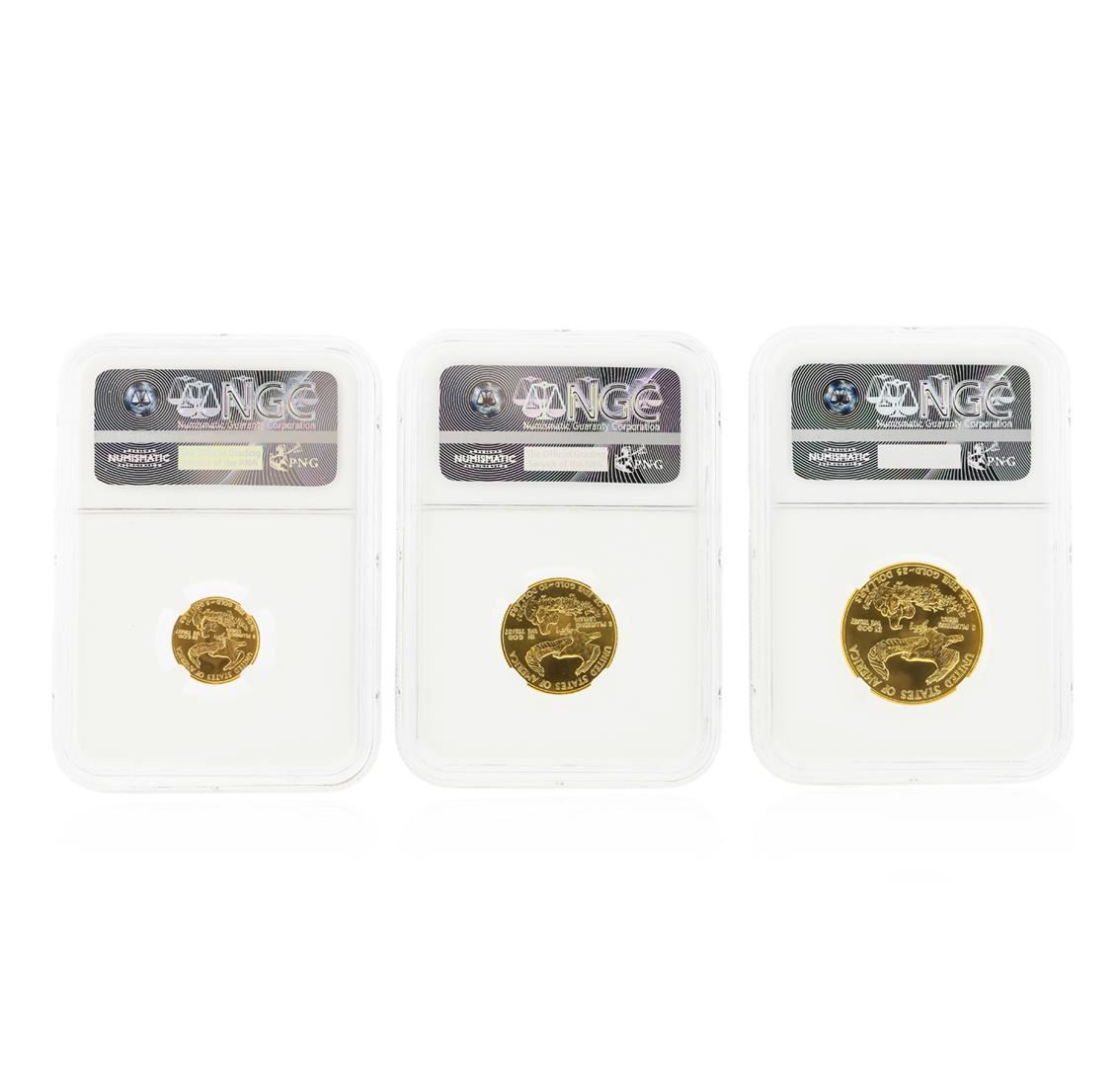 One 1986 $5/$10/$20 American Gold Eagle Coin Set NGC Graded MS69. NGC Certified.
