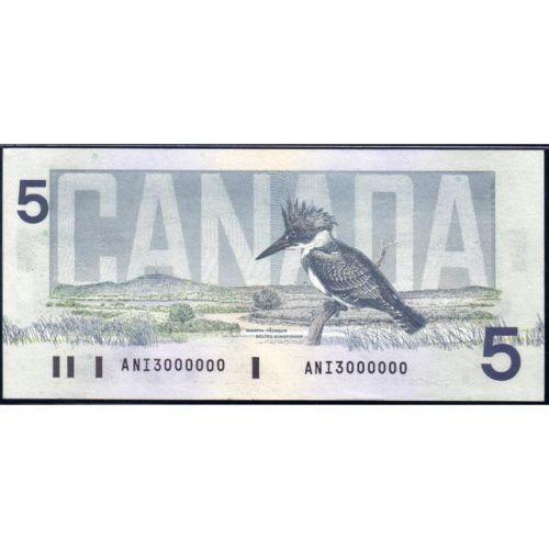 1986 Five Dollars Knight-Thiessen, BC-56d Million Serial Number ANI3000000, PMG Choice About Uncirculated 58 Exceptional Paper Quality