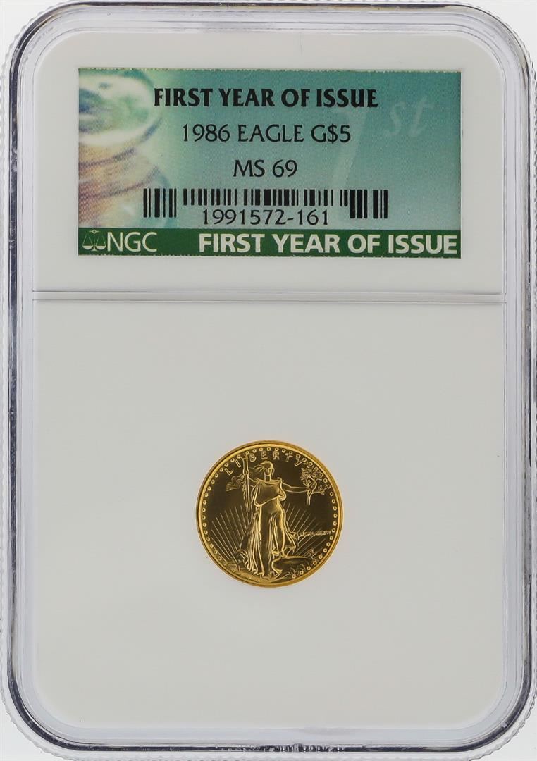 1986 $5 American Gold Eagle Coin First Year Issue NGC Graded MS69