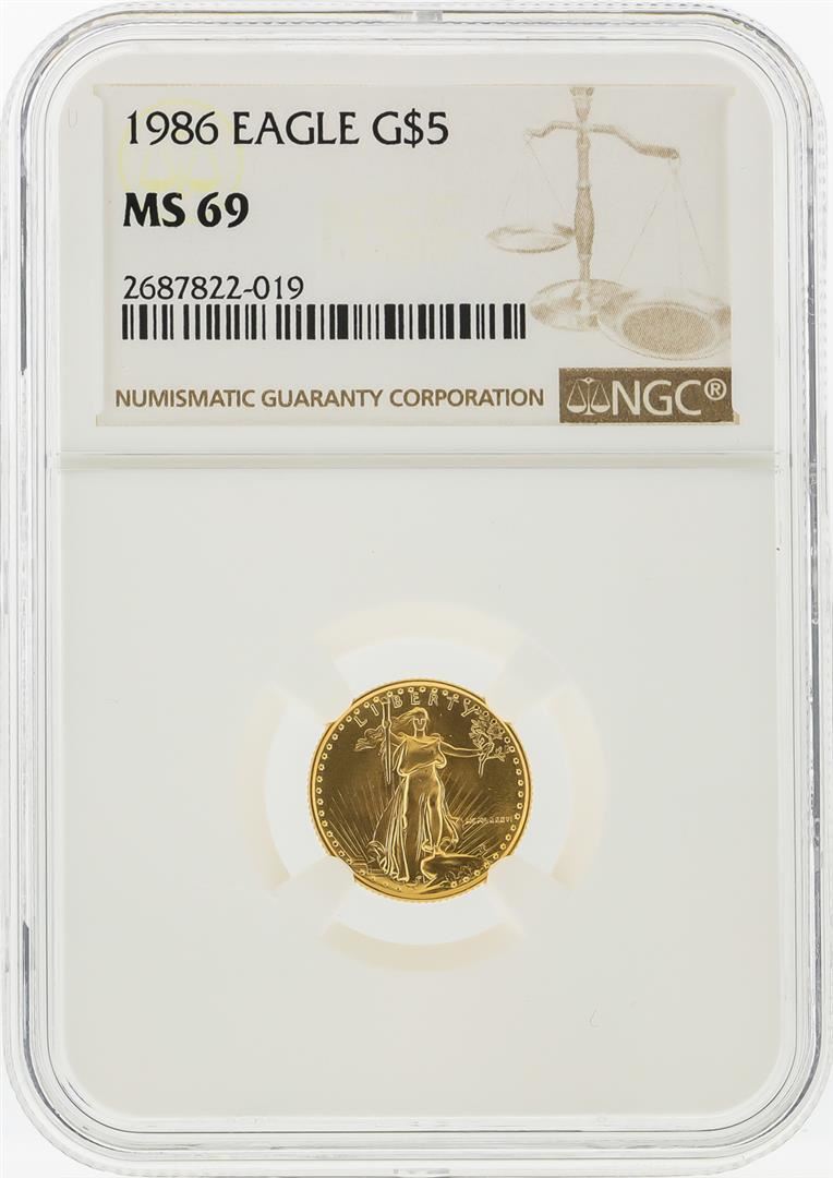 One 1986 $5 American Gold Eagle Coin NGC Graded MS69. NGC Certified.