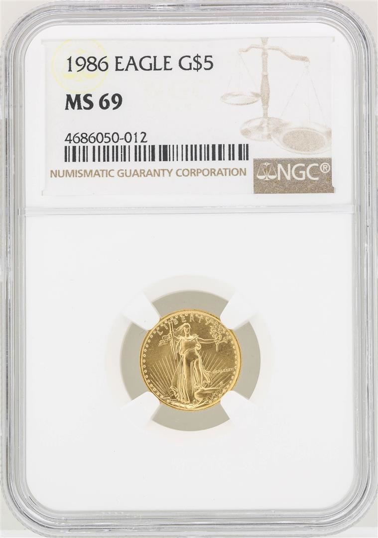 One 1986 $5 American Gold Eagle Coin NGC MS69. NGC Certified.
