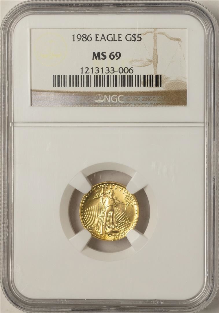 One 1986 $5 American Gold Eagle Coin NGC MS69. NGC Certified.