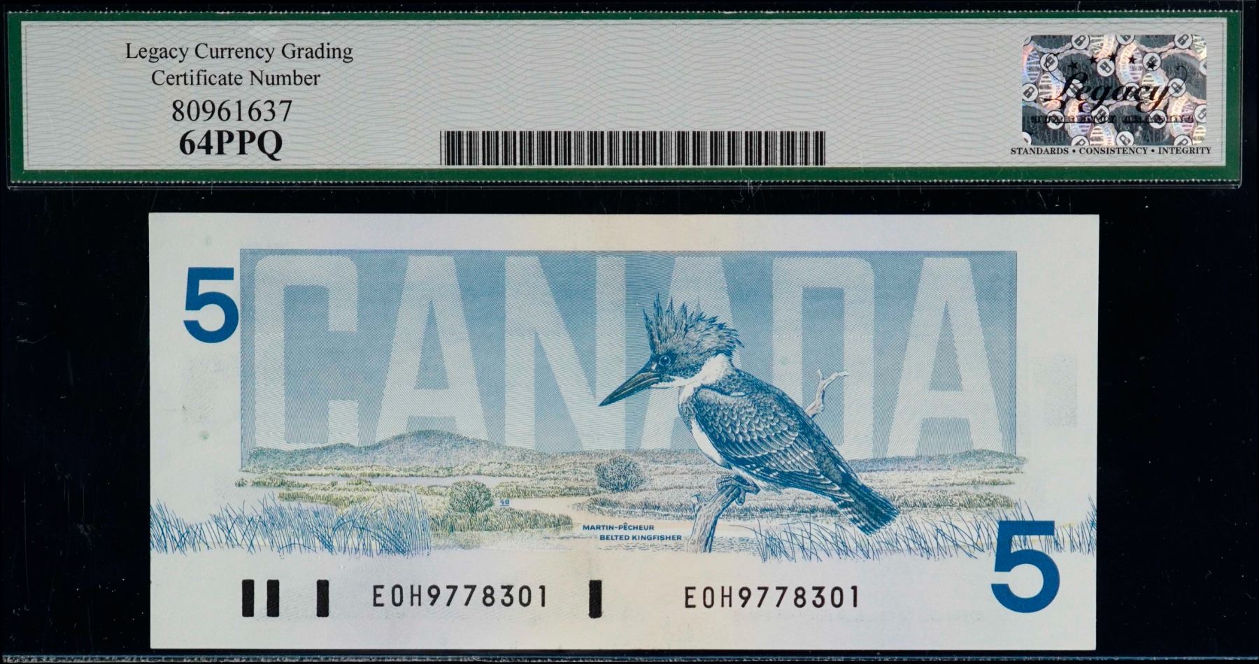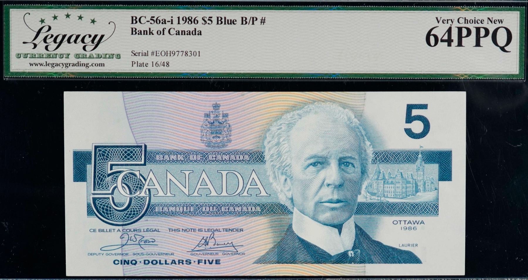 1986 $5 BC-56A #EOH9778301 "Blue Back Plate #" LCG Choice Uncirculated-64PPQ