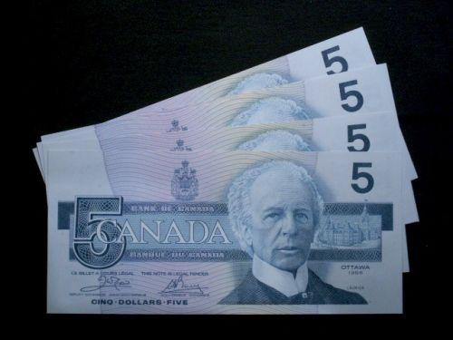 1986 $5 BC-56a Crow-Bouey ENA, ENB, ENM, EON all Uncirculated, ENL is AU. A nice lot of 5 notes.