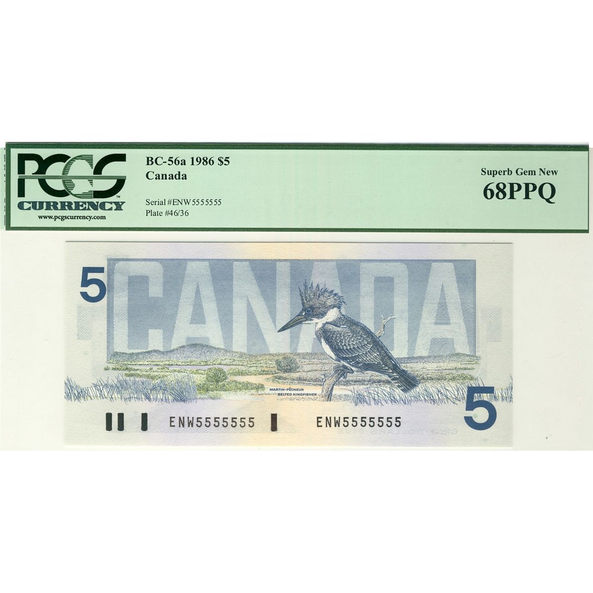 1986 $5 BC-56a SOLID #ENW5555555. PCGS Superb Gem UNC68PPQ. Rare this nice.