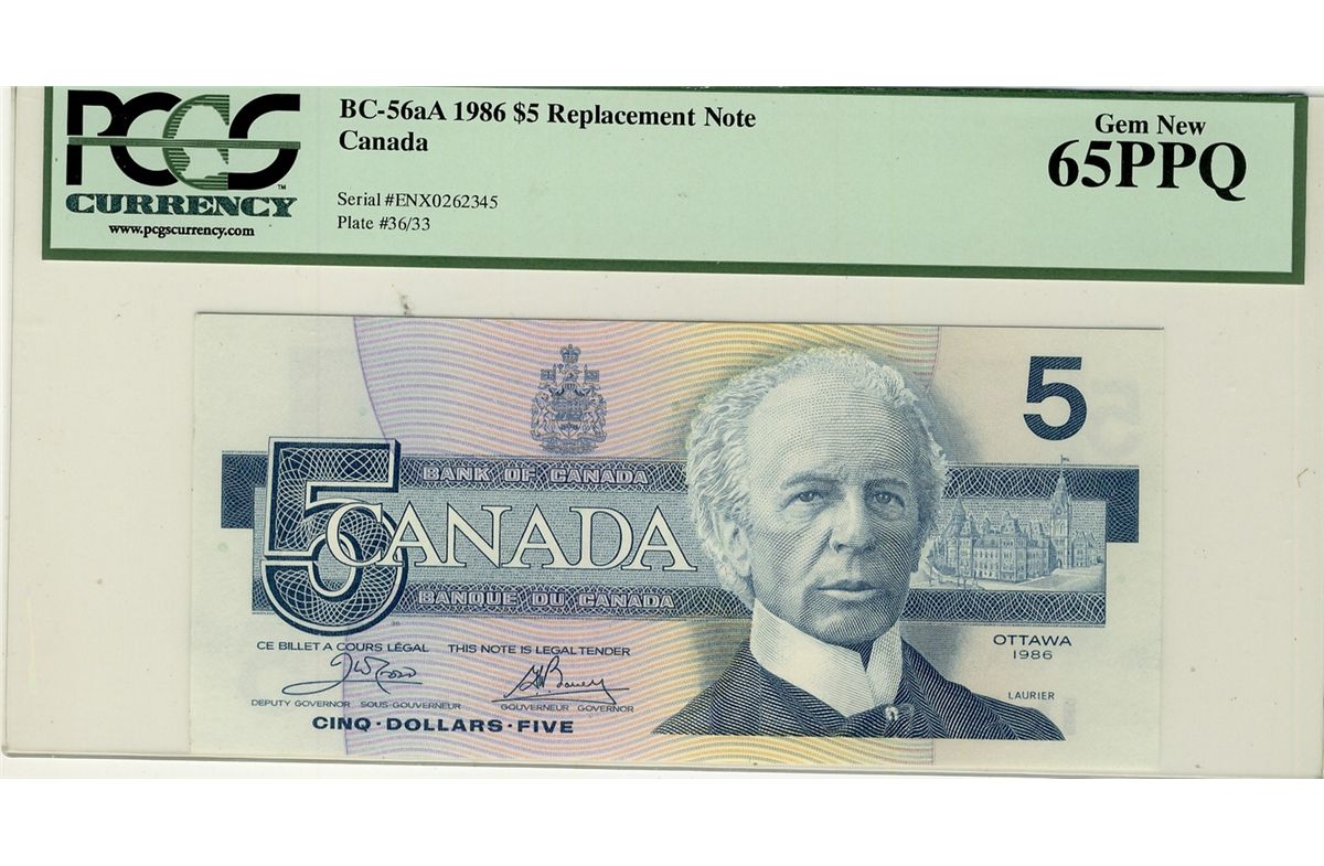 1986 $5 BC-56aA #ENX0262345 PCGS GEM UNC65PPQ.