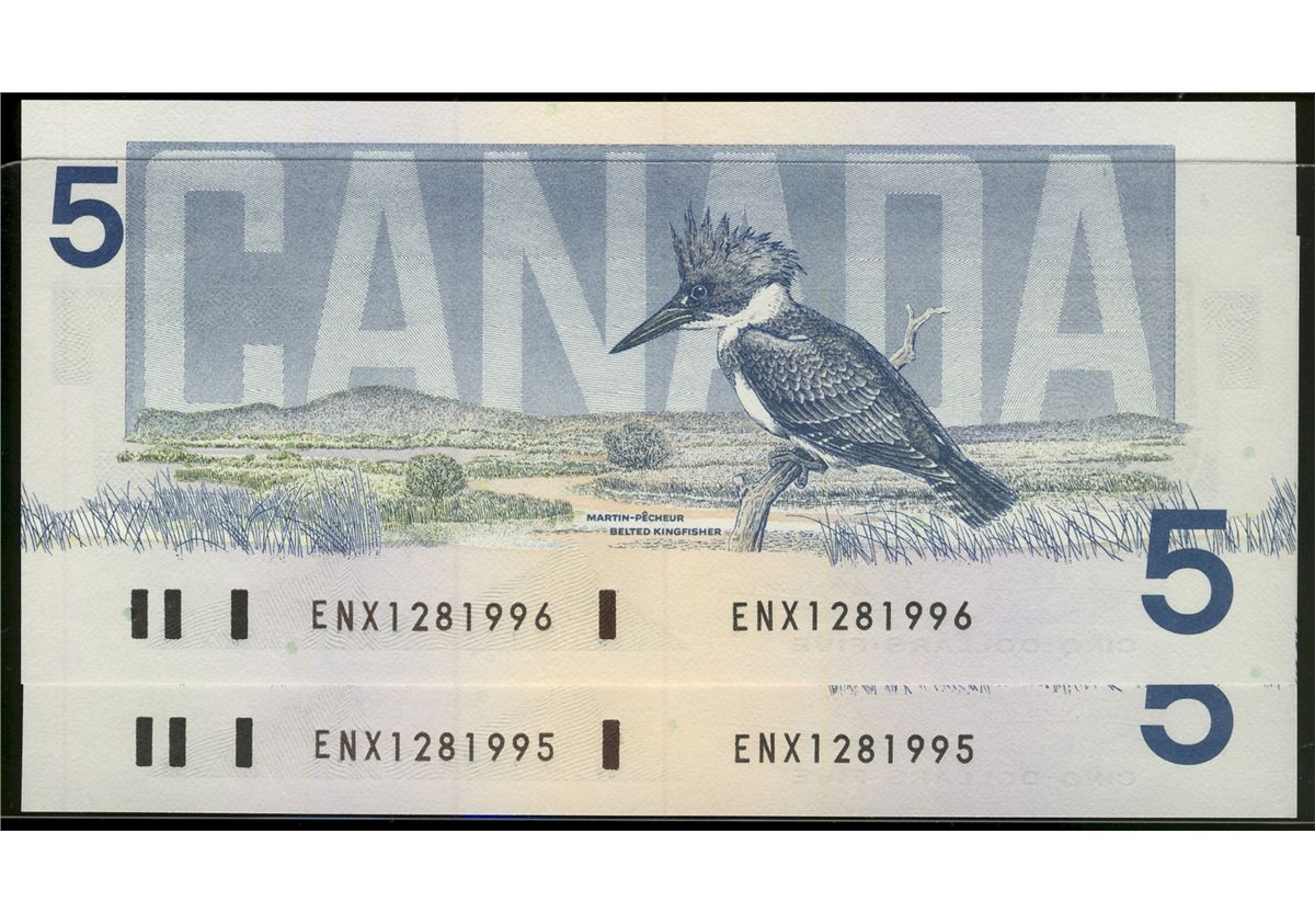 1986 $5 BC-56aA #ENX1281995/996. Lot of 2 consecutive issues. CH UNC issue.