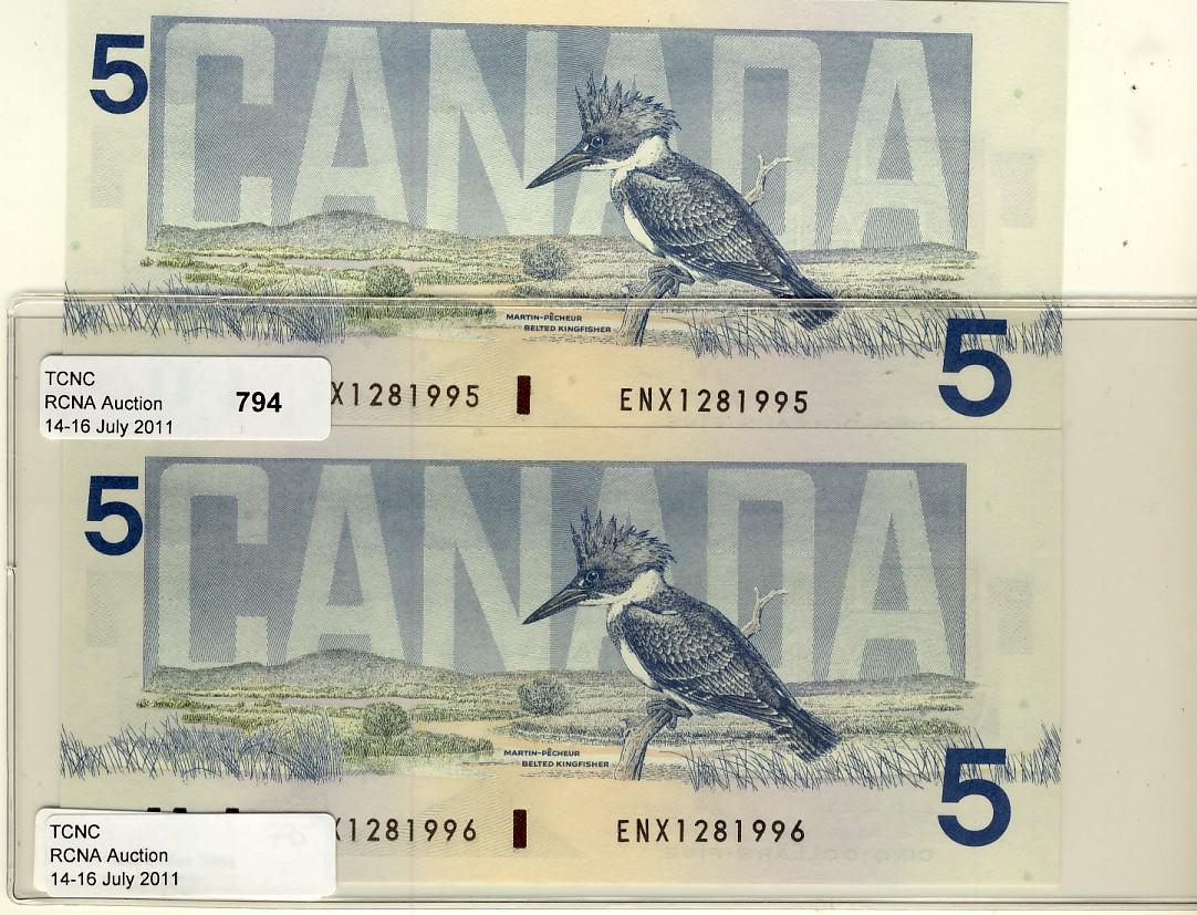 1986 $5 BC-56aA #ENX1281995/996. Lot of 2 consecutive issues. Solid choice issue.