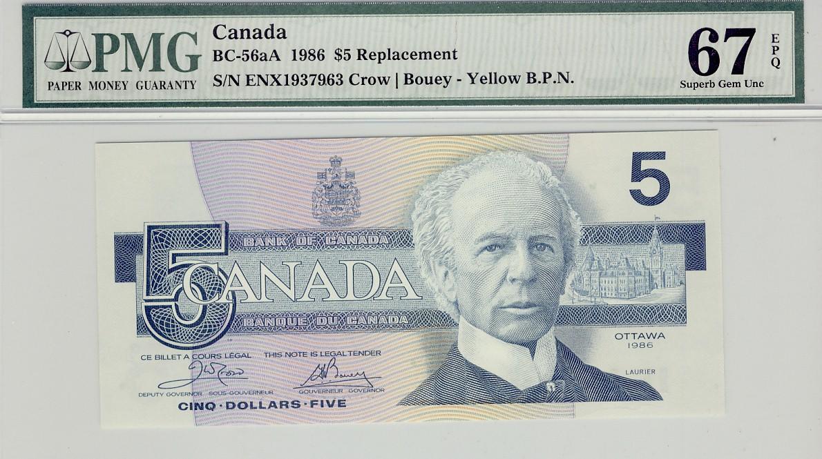 1986 $5 BC-56aA #ENX1937963 PMG UNC67 PPQ