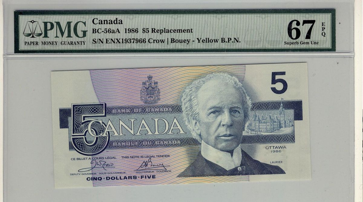 1986 $5 BC-56aA ENX1937966 PMG UNC67EPQ