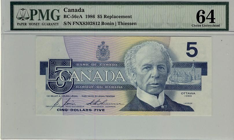 1986 $5 BC-56cA FNX8302812 PMG UNC64