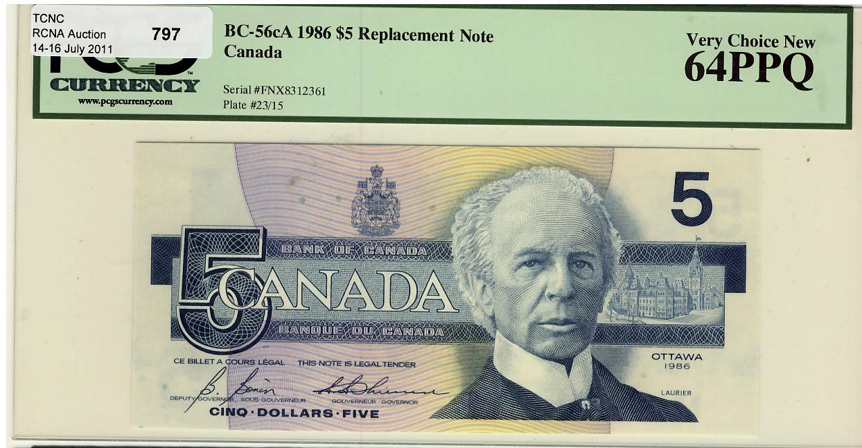 1986 $5 BC-56cA FNX8312361 PCGS UNC64PPQ