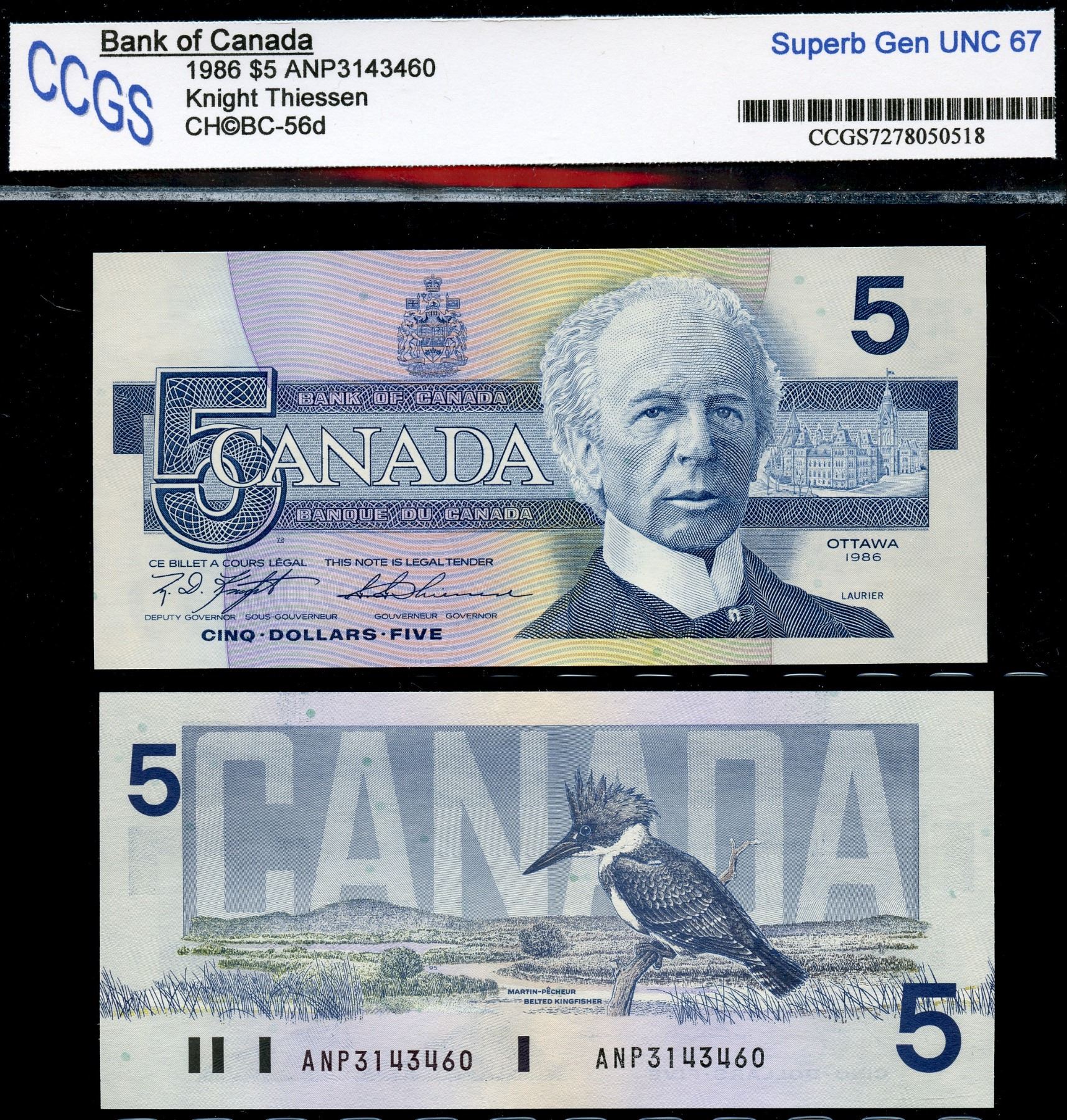 1986 $5 BC-56d #ANP3143460, CCGS Superb Gem Uncirculated-67,