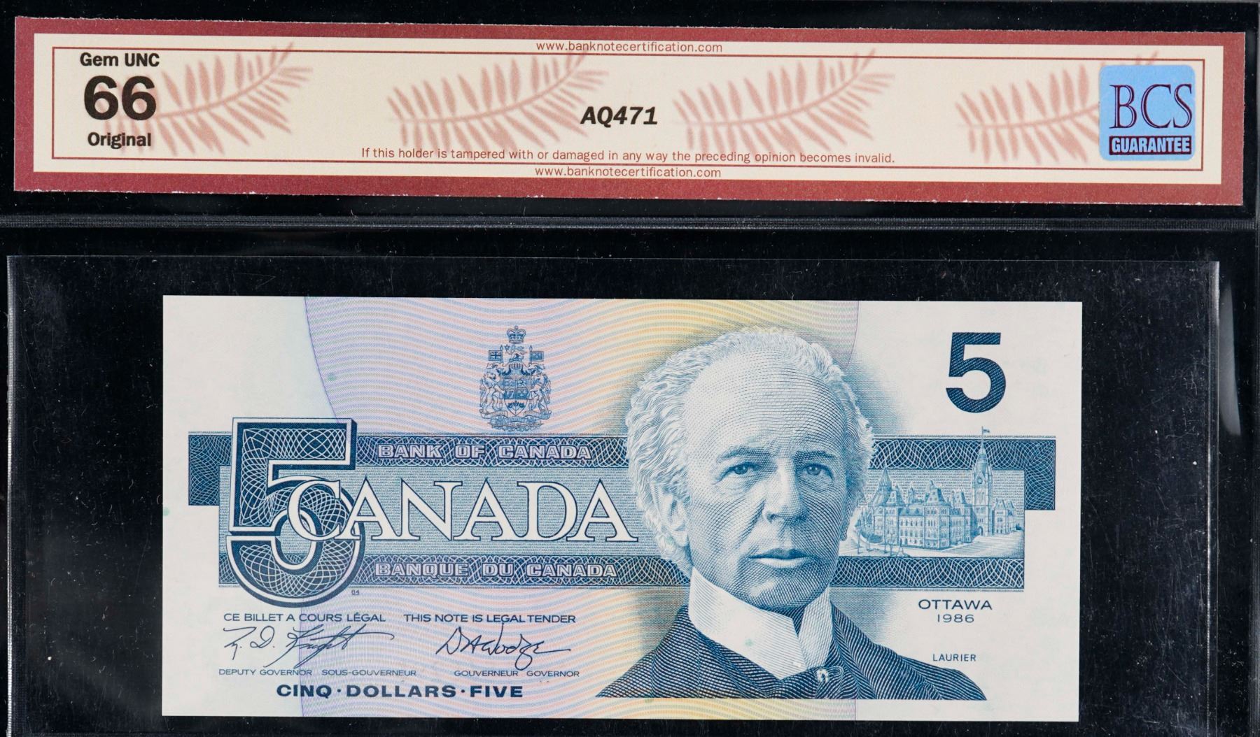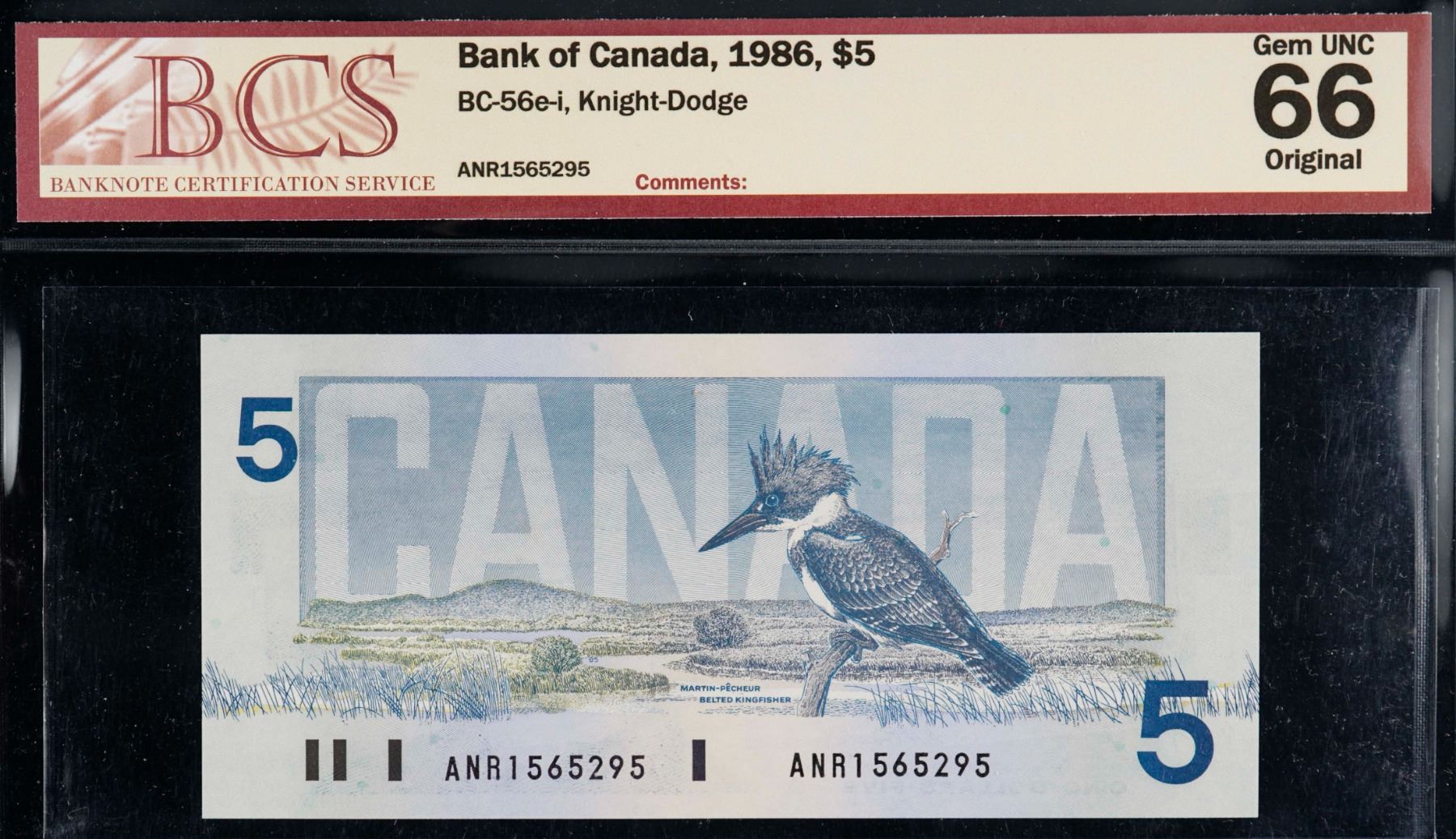 1986 $5 BC-56e-i #ANR1565295 BCS Superb Gem Uncirculated-66 Original.