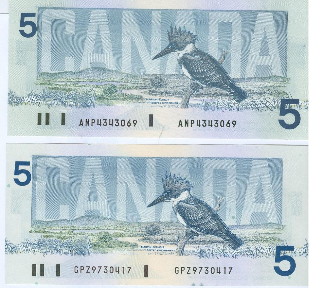 1986 $5 BC-56eA #GPZ9730417 & BC-56eA-i #ANP4343069. Lot of 2 UNC examples.