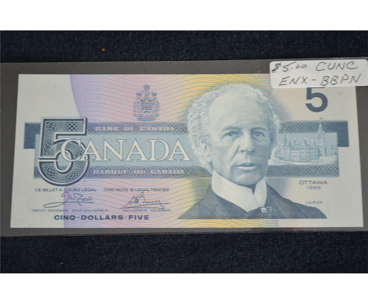 1986 $5 Canada Replacement Note - CUNC - ENX 3305567 - BC-56aA-i - (BBPN) Crow-Bouey - Value: $250.00