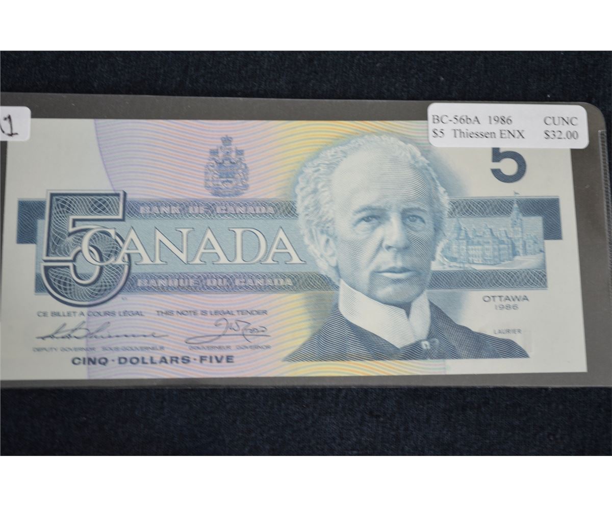 1986 $5 Canada Replacement Note - CUNC - ENX 3943847- BC-56bA - Value: $32.00