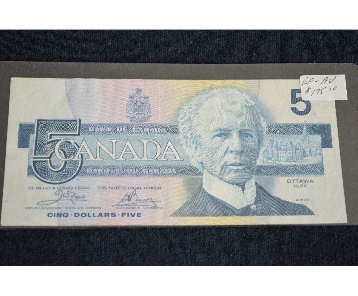 1986 $5 Canada Replacement Note - EF+ - ENX 0290255 - BC-56aA - (YBPN) - Crow-Bouey - Value: $175.00