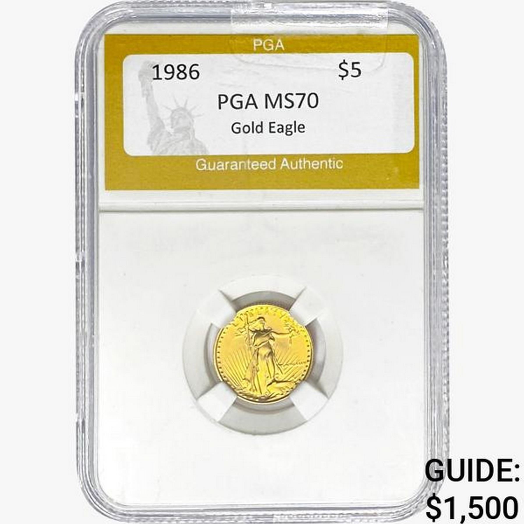 1986 $5 Gold Eagle 1/10 oz PGA MS70