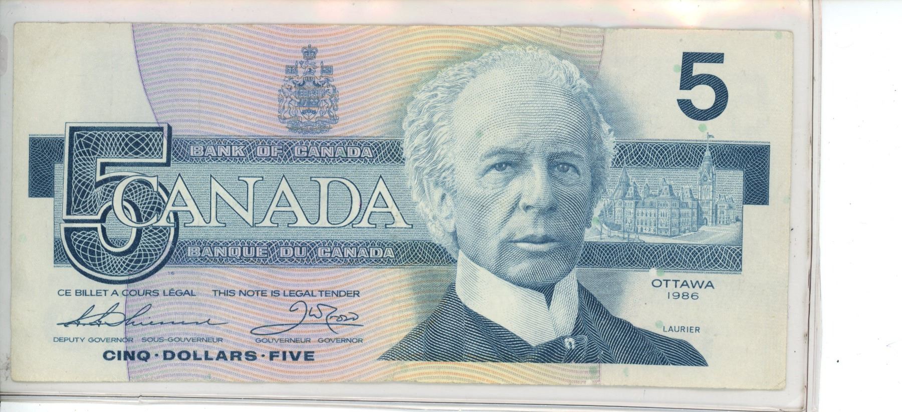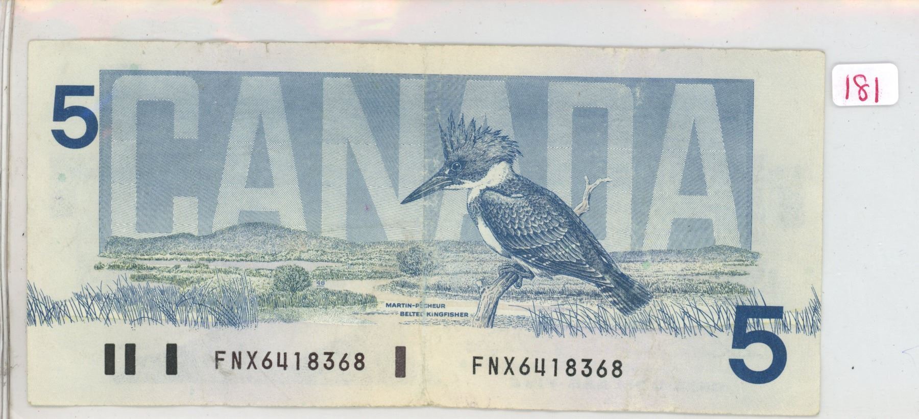 1986 $5 Replacement. Thiessen-Crow signatures. FNX Replacement Prefix. Large F. BC-56bA. VF-20.