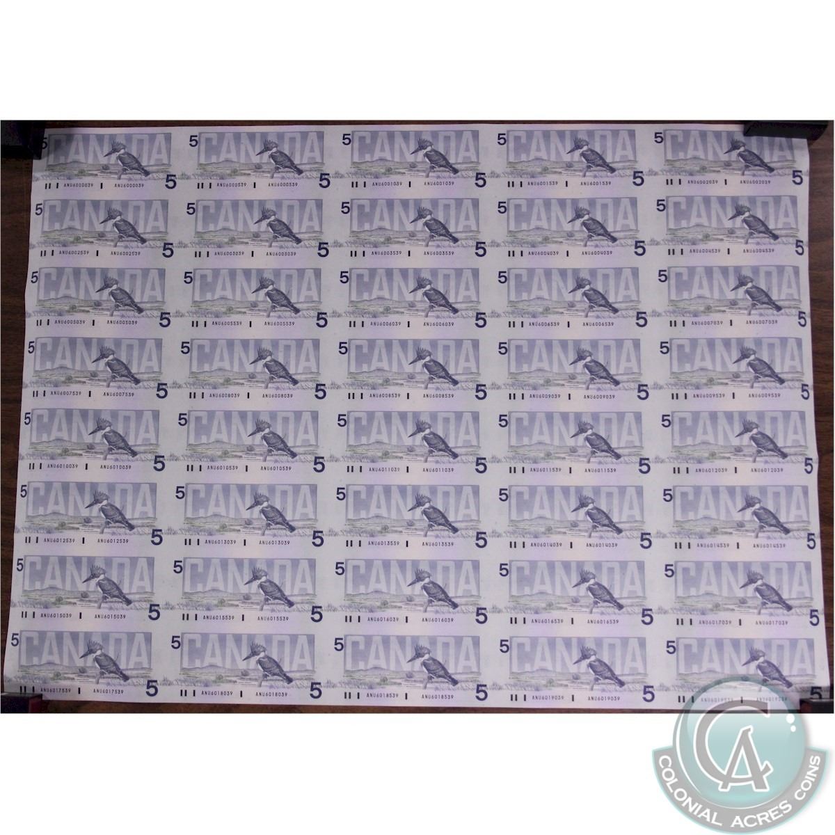 1986 $5 Uncut Sheet of 40 Notes as issued by the Bank of Canada