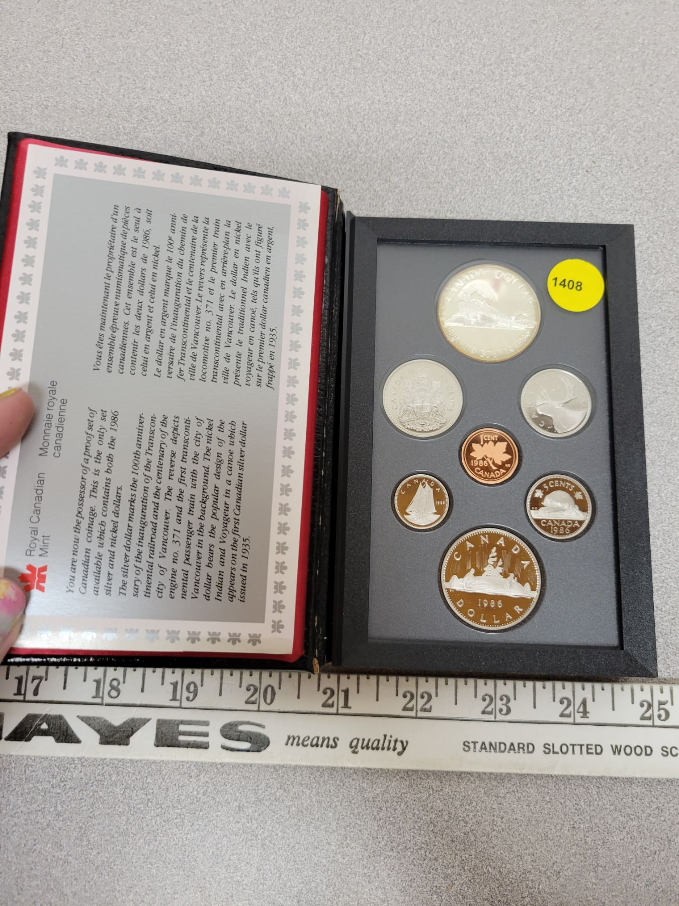 1986 7 Coin double dollar set RCM including one silver dollar comm. 100th annivesary of the inauguration of the transcontinental railroad and the Centenary of the City of Vancouver