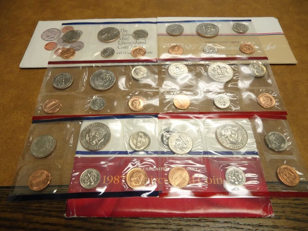 1986,87 & 1992 US MINT SETS P/D (WITH ENVELOPES)