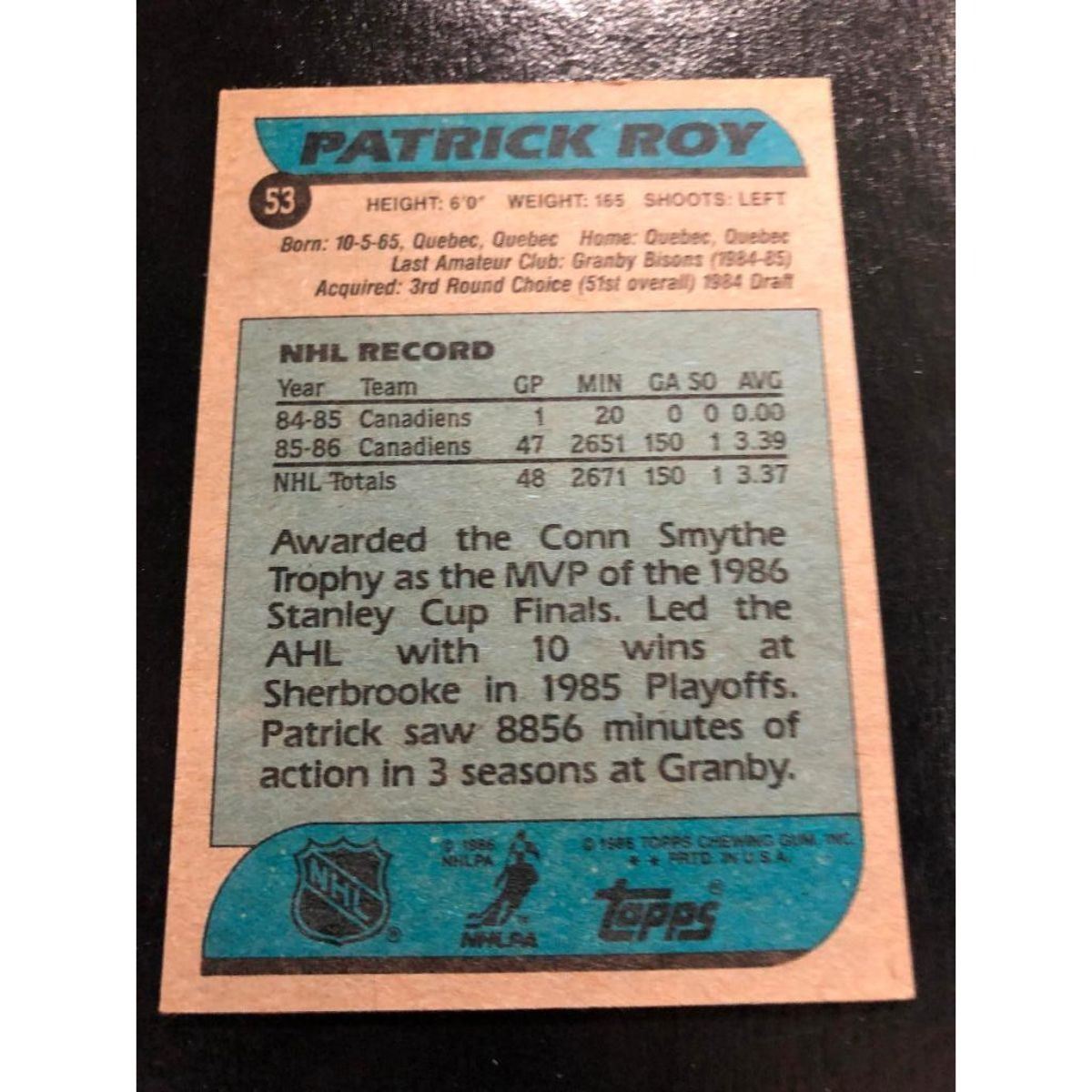 A 1986-87 NHL # 53 Patrick Roy RC Rookie Card. View Photos For Further Details.