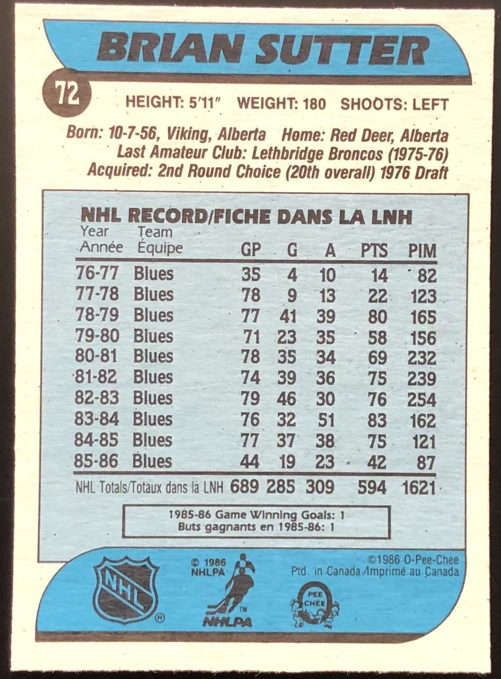 Card #72 NHL, hockey, vintage, OPC