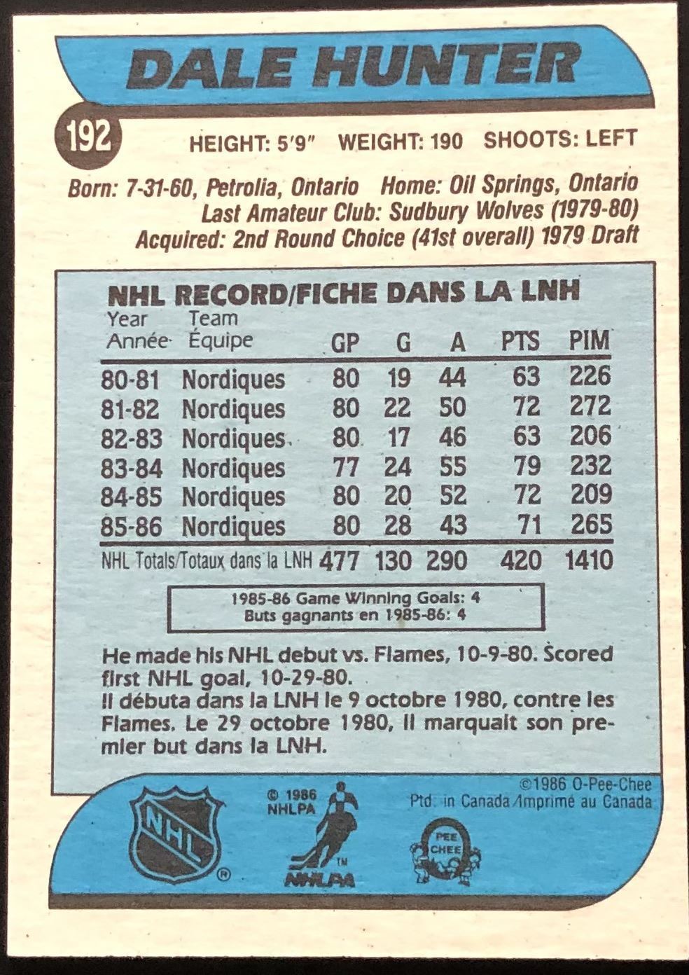 Card #192 NHL, hockey, vintage, OPC