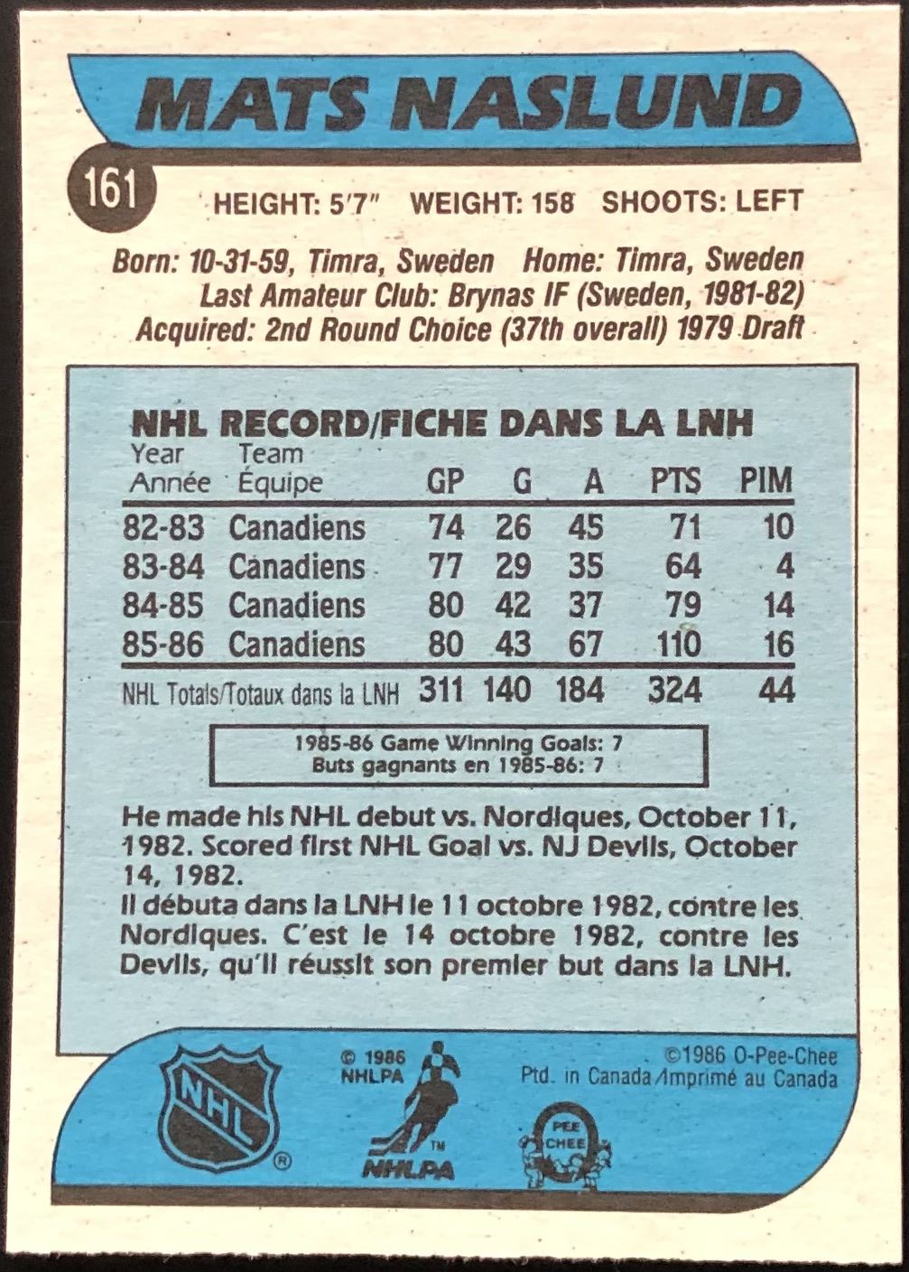 Card #161 NHL, hockey, vintage, OPC