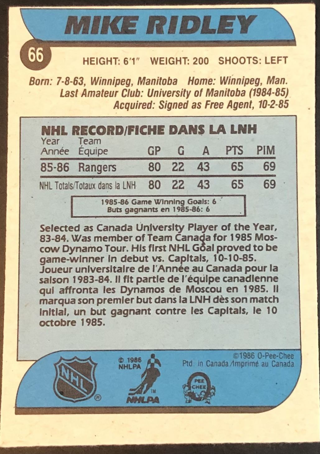 Card #66 NHL, hockey, vintage, rookie, OPC