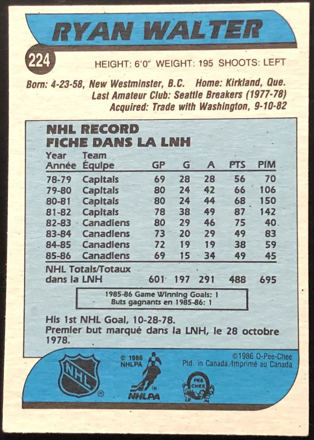 Card #224 NHL, hockey, vintage, OPC