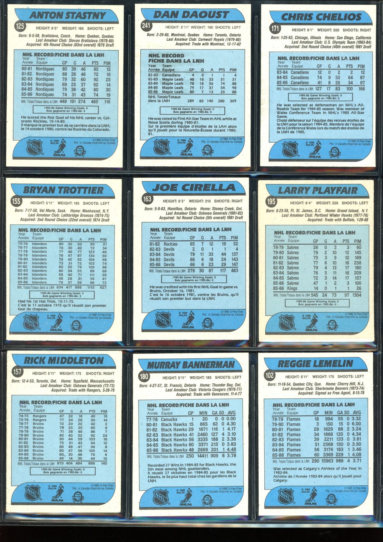 1986-87 OPC O-Pee-Chee Lot Of 9 Cards Various Teams & Players
