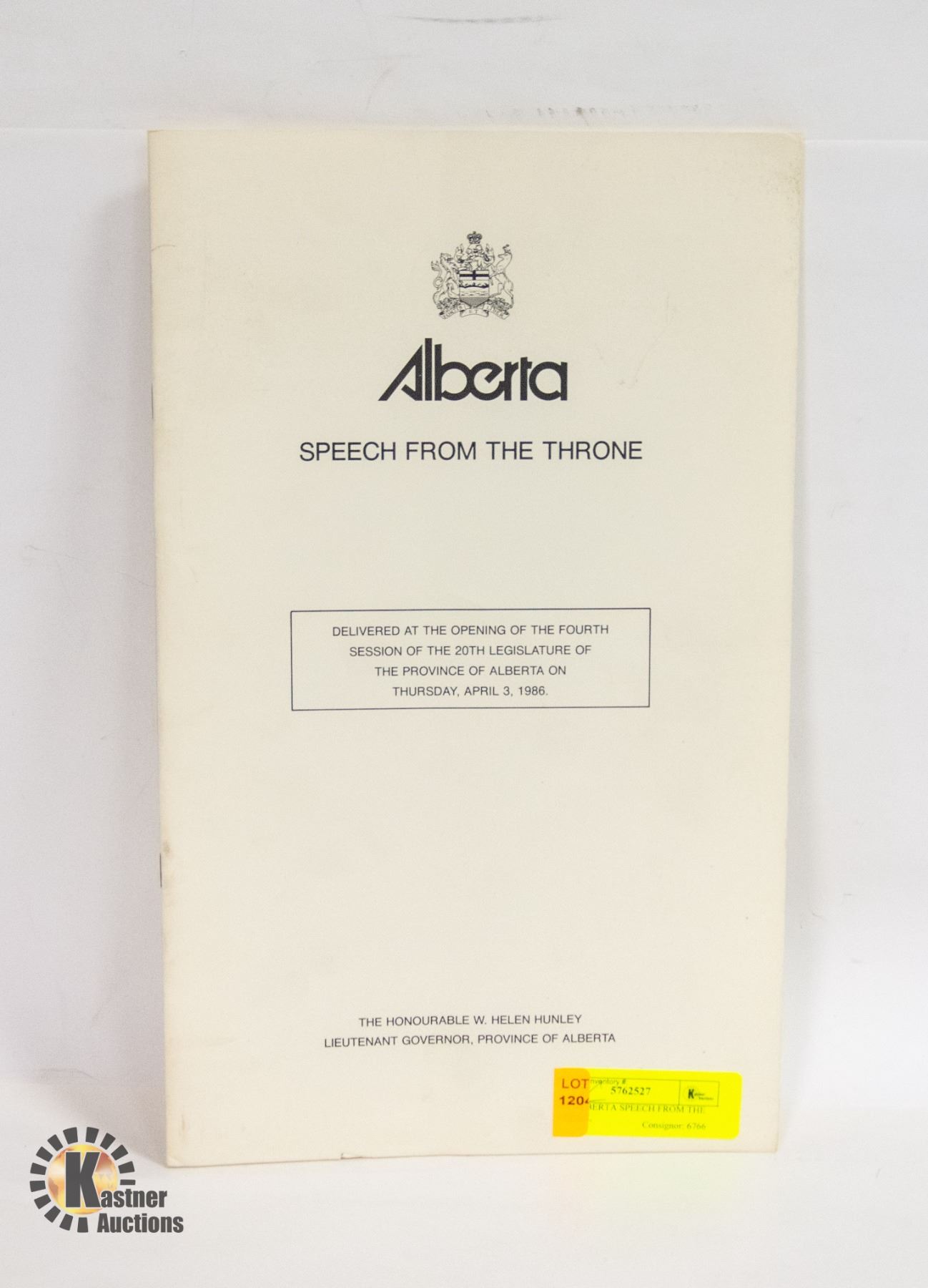 1986 ALBERTA SPEECH FROM THE THRONE,